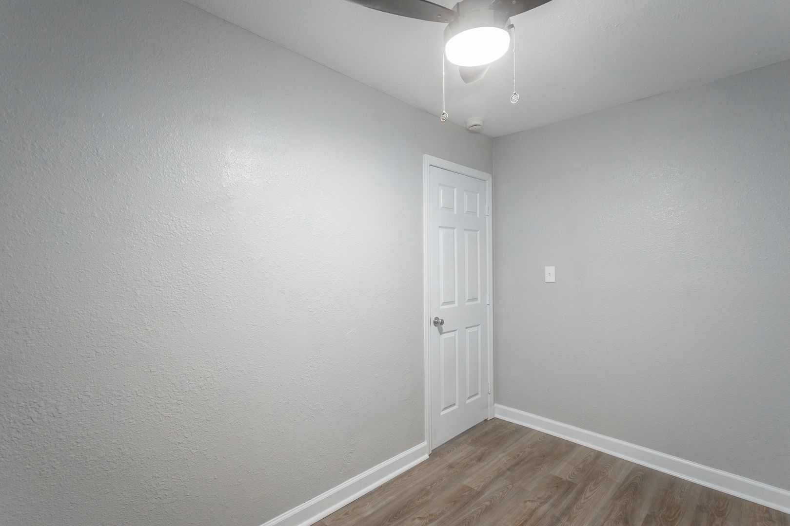 Both bedrooms provide comfortable space with updated flooring, ceiling fans, and good closet storage. The bathroom has been updated with a modern vanity, contemporary lighting, and clean finishes that give the space a polished feel.