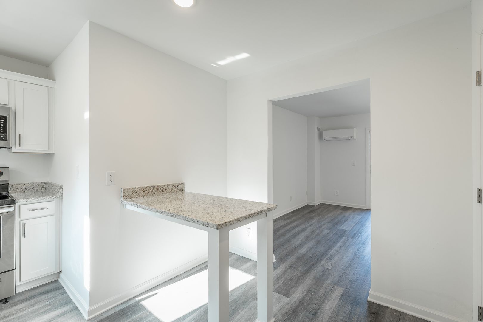 This updated one-bedroom, one-bath apartment offers a comfortable layout with hardwood-style flooring, an in-unit washer and dryer, and a private balcony overlooking Missionary Ridge.